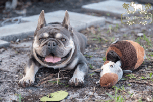 We call this boy Napoleon the Conqueror, because he has traveled over many Oceans to do just that. We first came across Napoleon while talking to a mutual friend and at the time he resided in China. For us it was love at first sight and we obviously had to have him with us. French Bulldogs take on many forms and at some point it just comes down to preference and for us personally hes is our absolute favorite….. like ever. Napoleon is blue and tan that carries the cream and chocolate gene. With the right complementing female he is capable of producing full suited cream dogs and also other color patterns such as Lilac and Tan. We hope he ends up being immortal because its not certain if there will be another like him.
